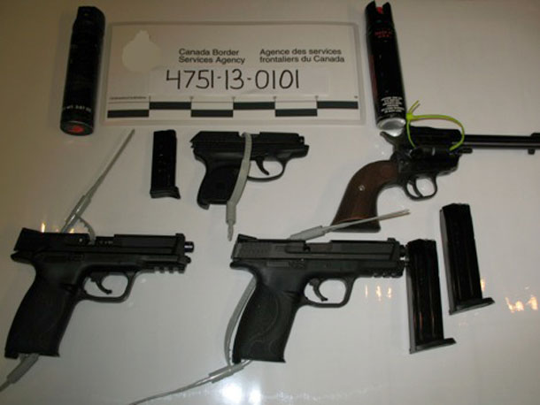 THUNDER BAY – Canada Border Security THUNDER BAY – Canada Border Services Agency officers were in hardcore action last week. The Canada Border Services Agency (CBSA) announced today that officers at the Pigeon River and Fort Frances ports of entry (POE) seized four loaded handguns, two canisters of pepper spray, a .38 semi-automatic and a loaded .38 revolver in three separate seizure actions last week.