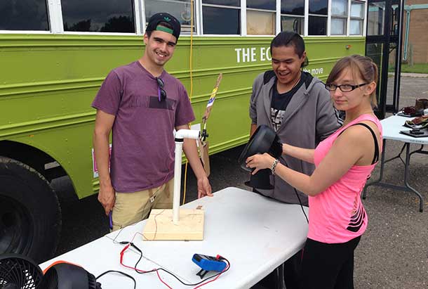 Today, participants learned about solar and wind energy aboard the EcoBus. Throughout the week, the program welcomed guest speakers from Confederation College and from the natural resources industry. Topics included dendrology, health and fitness, biomass energy, entrepreneurship, aboriginal mentorship and more. Participants will also get the opportunity to tour the college campus, the Aviation Centre of Excellence and Lakehead University.
