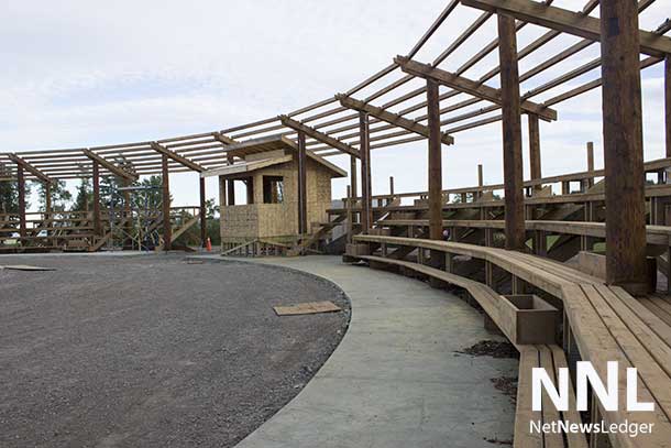 The circular wooden structure is a new and defined space developed specifically around Pow Wow activities and includes space for drumming and dancing. The entire arena structure was designed with wood. The dimensional lumber used was FSC (Forest Steward Council) cut. The pressure treated wood was treated with a MicroPro preservative system, which is the first treated wood process to be certified under Scientific Certifications Systems Environmental preferred products (EPP). The project also considered Storm Water Management and the grounds were raised to avoid water accumulation problems and drainage off the site. Oshki-Aki LP engineering firm (a partnership between Fort William First Nation and True Grit Consulting Ltd) headed up this project. FORM Architecture Engineering was selected as the Architects. Also contributing to the project was AG Engineering as the Electrical Engineer, and RML Contracting.