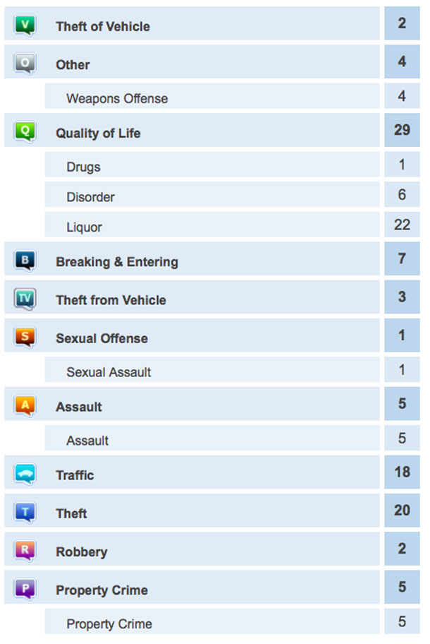 In addition there were seven break and enters reported to police. Police were also called for twenty robbery calls.