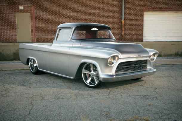 It took 7,000 man-hours and thousands of one-off hand-crafted parts to build this 1957 Chevrolet C-6 Custom Pickup, which sold for US$148,500 in Las Vegas in 2011. This truck comes with a 402cid LS3 motor, a complete Corvette C6 suspension and drivetrain with a six-speed transaxle and a full Air Ride suspension. The truck won a GM Design award at SEMA 2009 and a Mothers Choice Award at SEMA 2010.