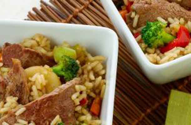 - Return beef to skillet. Add rice and marinade. Cook 1 to 2 minutes or until heated through and vegetables are crisp-tender. Serve in bowls.