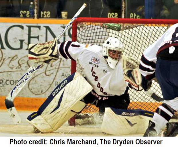 The Ice Dogs netminder currently leads all SIJHL goalkeepers in wins with 13.
