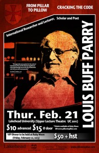 THUNDER BAY – Entertainment – Louis Buff Parry comes to Lakehead University for the Pillow to Pillar Lecture Series on Thursday, February 21, 2013 at 7PM