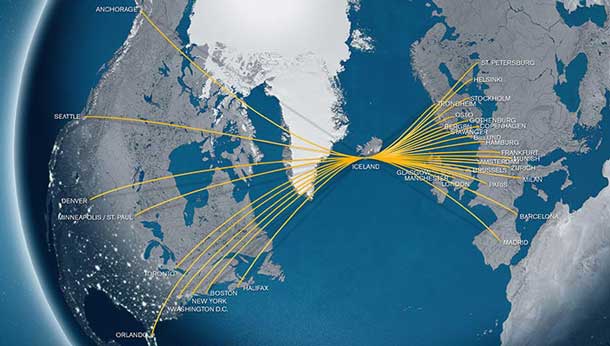 Icelandair, the flag carrier of Iceland since 1937, offers service to Iceland from Boston, New York-JFK, Seattle, Denver and Toronto with seasonal service from Newark, Washington, D.C., Minneapolis-St. Paul, Orlando Sanford, Halifax, and Anchorage. Connections through Icelandair’s hub at Keflavik International Airport are available to more than 20 destinations in Scandinavia, the U.K. and Continental Europe. Only Icelandair allows passengers to stopover in Iceland at no additional airfare.