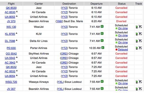 TORONTO – UPDATED 08:00EST – Pearson International Airport is in a ‘Ground Stop’ until 9:00AM EST. The weather conditions in Toronto with cold temperatures, and high wind chill factors have caused the airport to in effect shutdown. Pearson Airport is tweeting: “Departing flights can go as airlines are ready and planes are serviced. No arrivals at this time”.