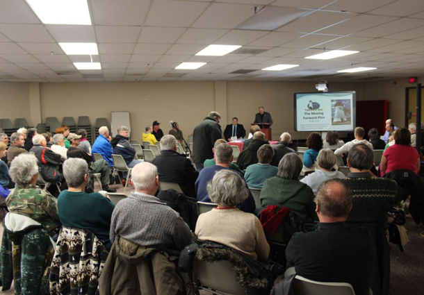 The “Moving Forward Plan” was presented to Municipal employees in the morning followed by a public presentation.