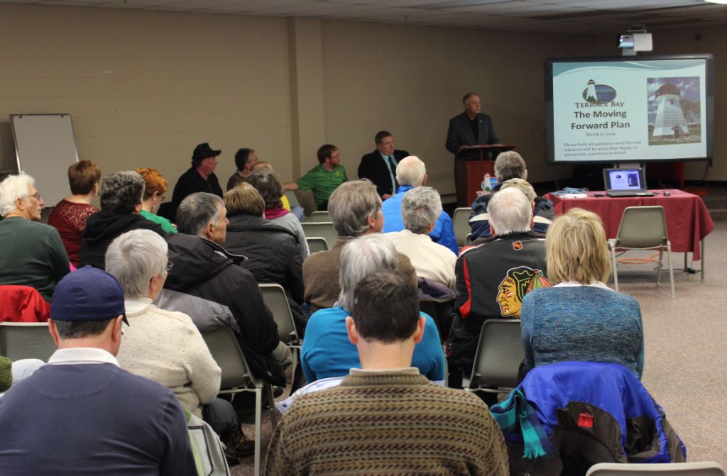 Council and Administration of the Township of Terrace Bay presented their plan to the community at a public meeting that filled the hall, held on Mach 17th,