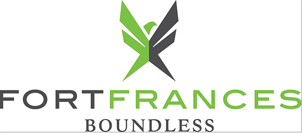 The colours green and deep grey describe Fort Frances as the meeting place between the wilderness landscape and industrial center. The wings of the bird which has been interpreted as either an eagle or a phoenix are the F’s from Fort Frances. The bird is stretching to take flight. The word Boundless describes our human spirit of entrepreneurship and opportunity.