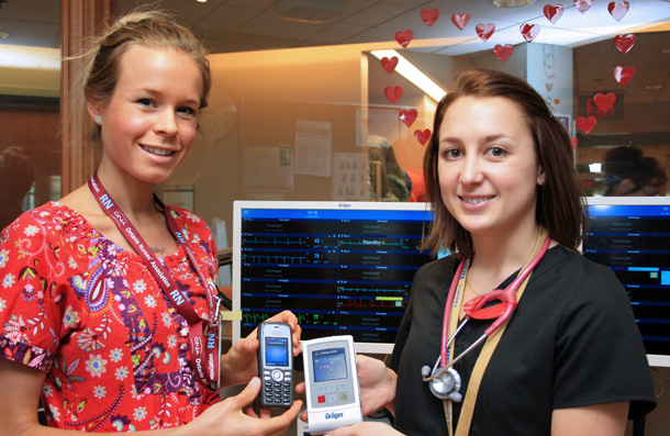 Nurses also carry a special phone with them at all times to alert them of alarms.