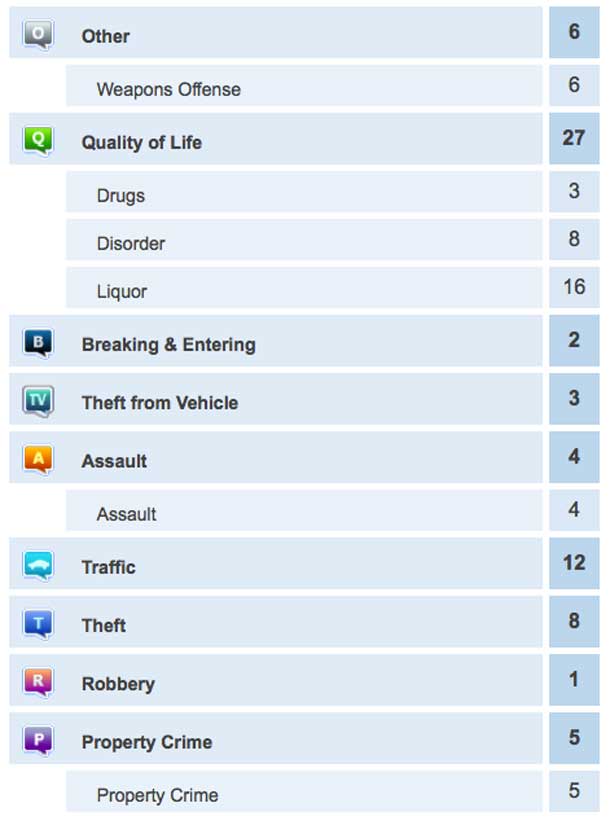 The Crime Report for the weekend shows a number of incidents. TBPS dealt with seventy-six incidents on Saturday. These included six weapons offences, twenty-seven Quality of Life calls including 16 alcohol related calls. There were also four assaults.
