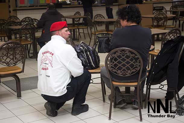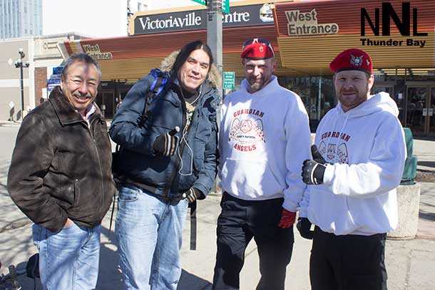 THUNDER BAY – The Guardian Angels were out in the downtown Fort William Business District on Friday afternoon. The Angels are starting to get to know the local shop owners, and business owners, talk with local residents and gather needed feedback from people in the area.