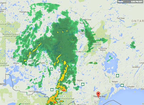 Environment Canada is reporting that conditions are favourable for the development of dangerous thunderstorms that may be capable of producing damaging wind gusts, large hail and heavy rain.