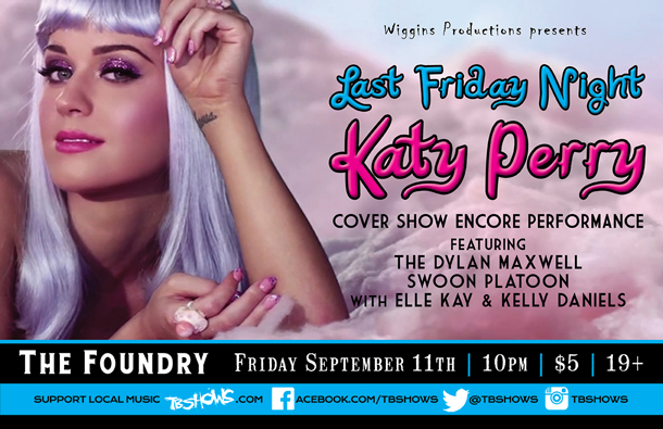 Thunder Bay – ENTERTAINMENT – Wiggins Productions will be hosting Last Friday Night: Katy Perry Cover Show Encore Performance, Friday, September 11 at the Foundry (242 Red River Road). The night will feature a very special encore performance from the Dylan Maxwell Swoon Platoon as they pay tribute to the queen of pop herself, Katy Perry. Opening the show will be special guests Elle Kay and Kelly Daniels.
