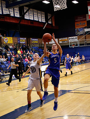 Back up point guard Rachel Webber was anything and everything her team needed her to be, as she scored 8 points with 5 assists, but made her biggest impact on defense. With the Voyageurs threatening late, Webber’s tenacious defense on Danielle Harris in the backcourt got the wily Laurentian vet off balance. Harris barrelled into Webber in an attempt to draw a foul, but Webber’s quick footwork kept her squared up to Harris, who was called for the offensive foul, thus extinguishing any hope of a Voyageurs comeback.