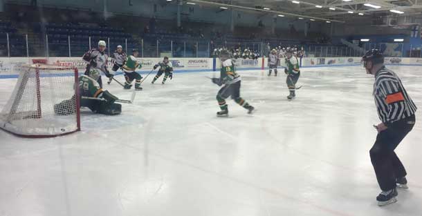 The North Stars then used the man advantage again to take the lead as Brendan Gillis fired a crisp cross-ice pass to defenceman Aaron Wesley-Chisel on the face-off dot, who fired in the go ahead marker at 8:43.