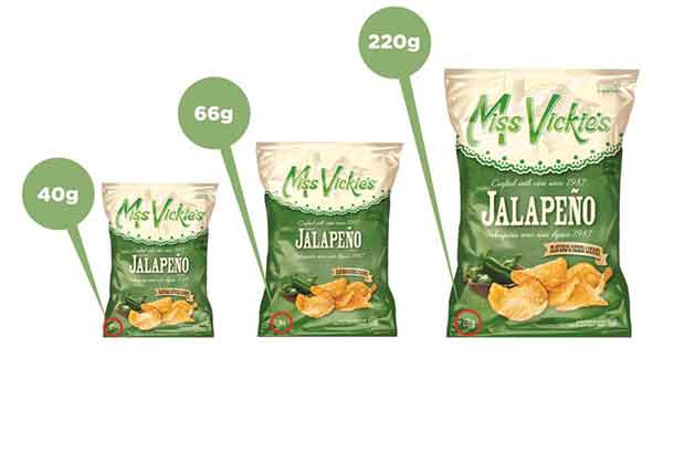 40 gram bags of Miss Vickie’s® Jalapeño flavour kettle cooked potato chips