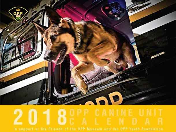 KENORA – The Ontario Provincial Police have released a 2018 calendar featuring some of the members of OPP K9 Units from across the province, including the Kenora OPP K9 team of Provincial Constable Jeff Poperechny and his four-legged partner, Cinch. Cinch is a single-purpose Ground Search and Rescue Dog who searches for missing, lost or despondent people. P/C Poperechny is also the handler for Jax, a General Purpose K9 dog.