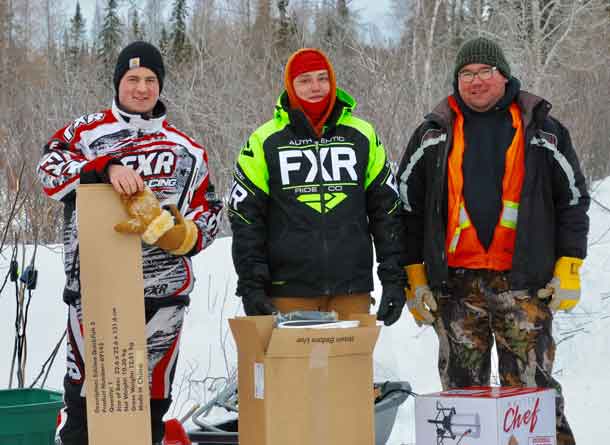There were prizes awarded for longest fish of any species in both the adult and child categories. The adult category First Place Eskimo Ice Hut Tent prize was won by Noah Stark, Second Place prize Family Fishing Gear was won by Sterling Lesperance and Third Place prize Turkey Deep-Fryer was won by Ida Shawanamash. The child category First Place Ryde Thunder Snow Bike prize was won by Ashton Forgette, Second Place Snow-Shoes prize was won by Emilie Kelner and the Third Place Ice-Fishing Gear was won by Barrett Alton. GGM’s Door Prize draw, a locally made Custom Fire Pit was won by Yvonne Johnson. Congratulations to all prize winners!