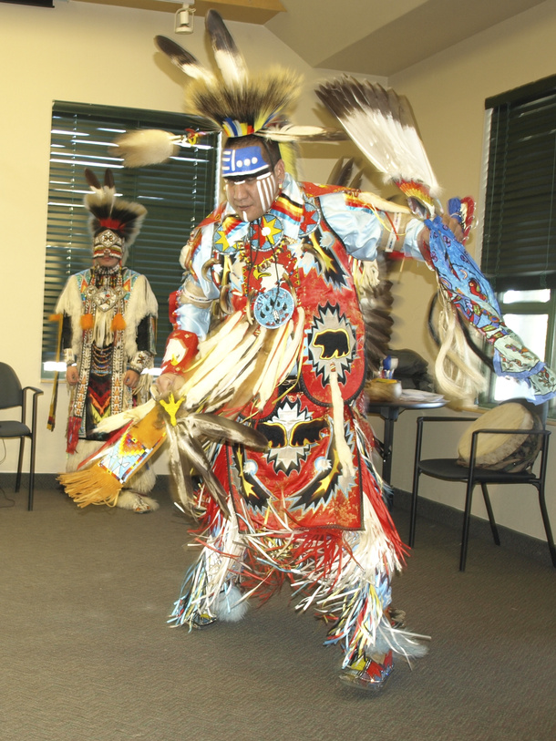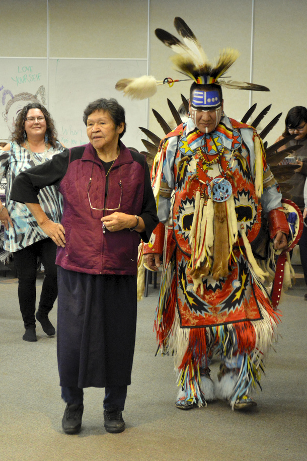 The event was also facilitated by the Running Thunder Traditional Dance Group and Teachers, from Alberta. The group was led Adrian LaChance, Men’s Traditional Dancer of James Smith Cree Nation in Saskatchewan along with Dale Gadwa Jr, Mens Grass Dancer, of Kehewin Cree Nation, Alberta and Alicia Cardinal, Fancy Shawl Dancer of Lac La Biche, Alberta. They led the youth in several group sessions, activities and sharing circles. The final day of the event featured the dance group in full regalia as they performed for the participants and during breaks provided traditional teachings about the songs and dances. LaChance is well known across Canada as a traditional performer, teacher and workshop facilitator.