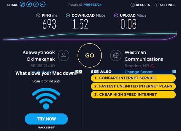 Internet speeds in Fort Severn are as slow as 0.05 megabytes per second, with upload speeds as slow as 0.01 megabytes per second under the current system.