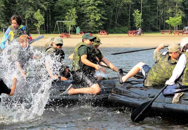 The camp taught a range of skills, including first aid, marksmanship and safe handling of firearms, how to set snares and build emergency shelters, watermanship skills using assault boats, how to judge distance, use hand signals, tie knots and lashes, how to read maps and use a compass. They enjoyed learning basic army drill. They also participated in traditional teachings, built a sweat lodge, and participated in teaching sweats.