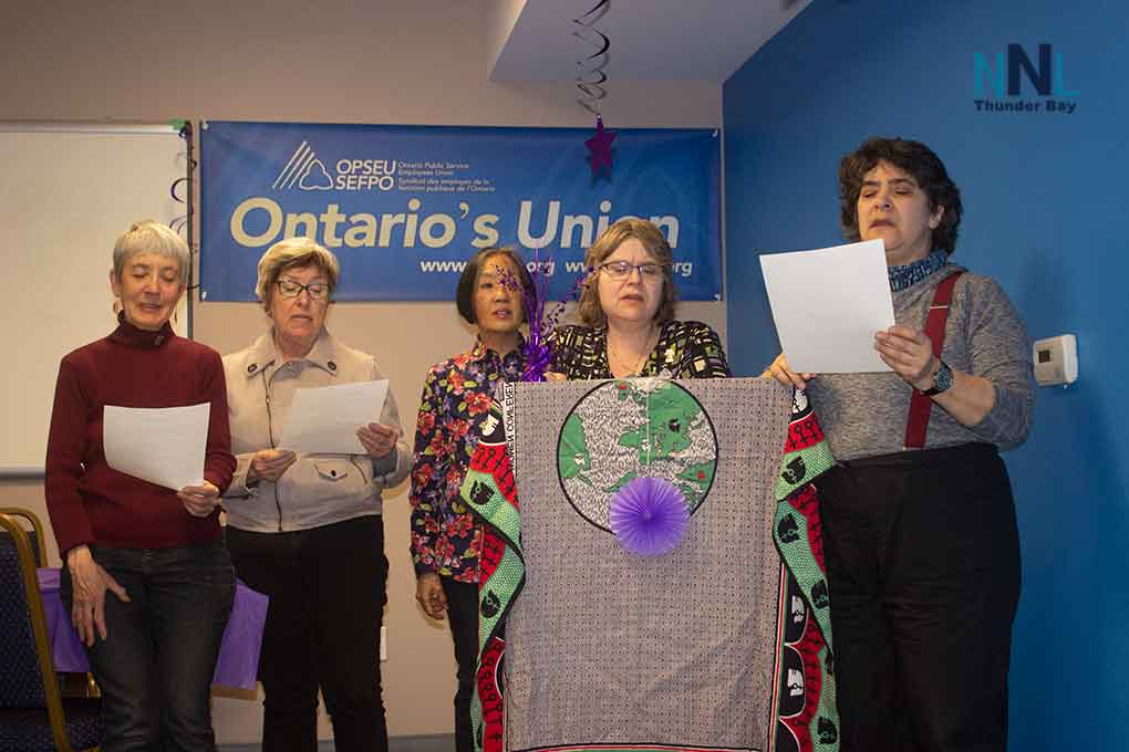 THUNDER BAY – The Thunder Bay Women’s Action Network event celebrated International Women’s Day in Thunder Bay with a walk, some talk, some songs, and a delicious meal with supporters at the new OPSEU headquarters this evening.