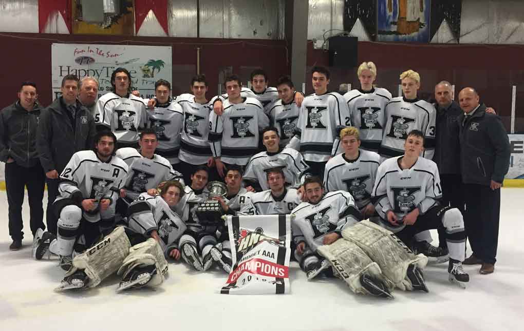THUNDER BAY – The Thunder Bay major midget Kings picked the game-winning goal and an assist from Travis Hensrud to break a third-period tie to help them defeat the Kenora Thistles 3-1 Friday to capture the Hockey Northwestern Ontario AAA midget District Championship in front of a large crowd at Fort William First Nation Arena.