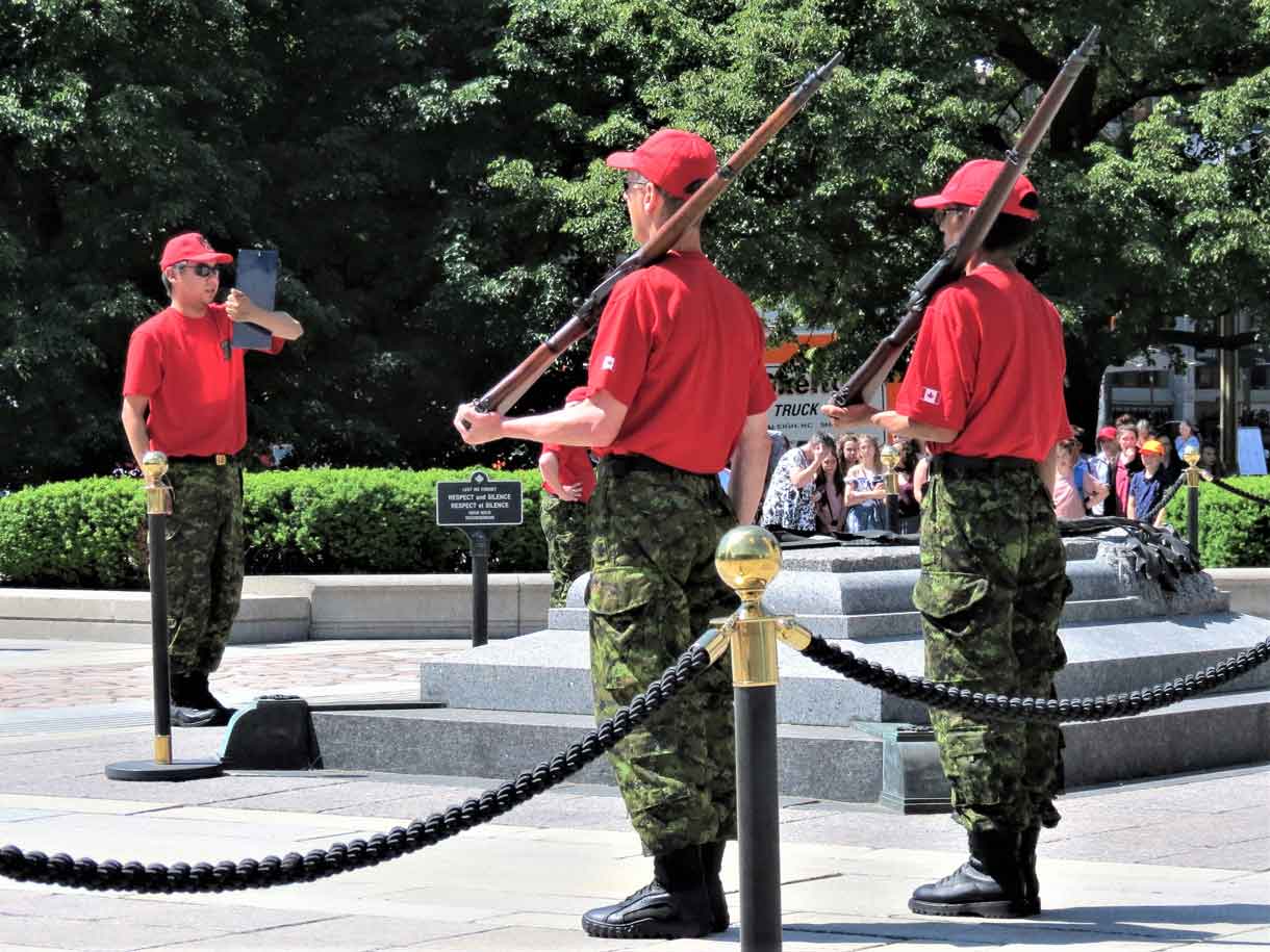 The Tomb lies in front of the National War Memorial and is guarded by members of the Canadian Armed Forces during the summer months when it is visited and seen by thousands of people from around the world.