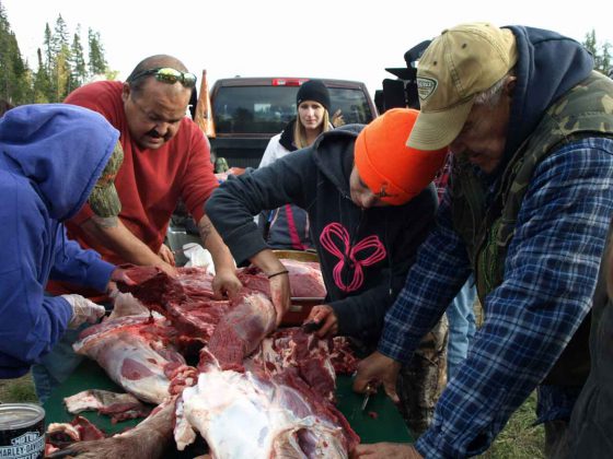 The event brought together First Nation hunters, Elders and families from the First Nations of Matachewan, Beaverhouse, members of the Metis Nation and invited guests. They came together for the event with community members and their families as part of a three-day hunt camp dedicated to sharing the teachings of Elders involving traditional moose harvesting on the land.