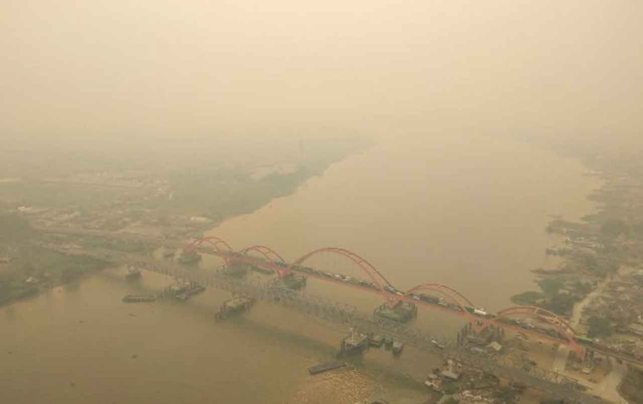 An aerial photograph taken on Monday showing Palembang engulfed in thick, yellow haze featured on the front page of the Jakarta Post newspaper on Tuesday.