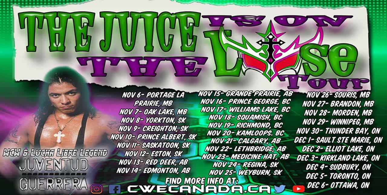 The tour coined “The Juice Is On The Loose Tour” is headlined by WCW & Lucha Libre Cruiserweight Legend Juventud Guerrera from Mexico who is headlining and competing on his first-ever Canadian wrestling tour.