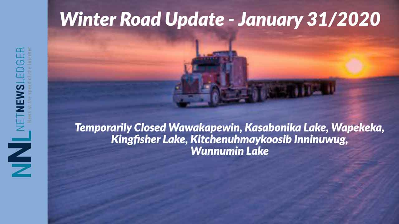 There are six communities where the winter road is currently closed as of the time of this report. Temporarily Closed Due to Weather: Wawakapewin, Kasabonika Lake, Wapekeka, Kingfisher Lake, Kitchenuhmaykoosib Inninuwug, and Wunnumin Lake.