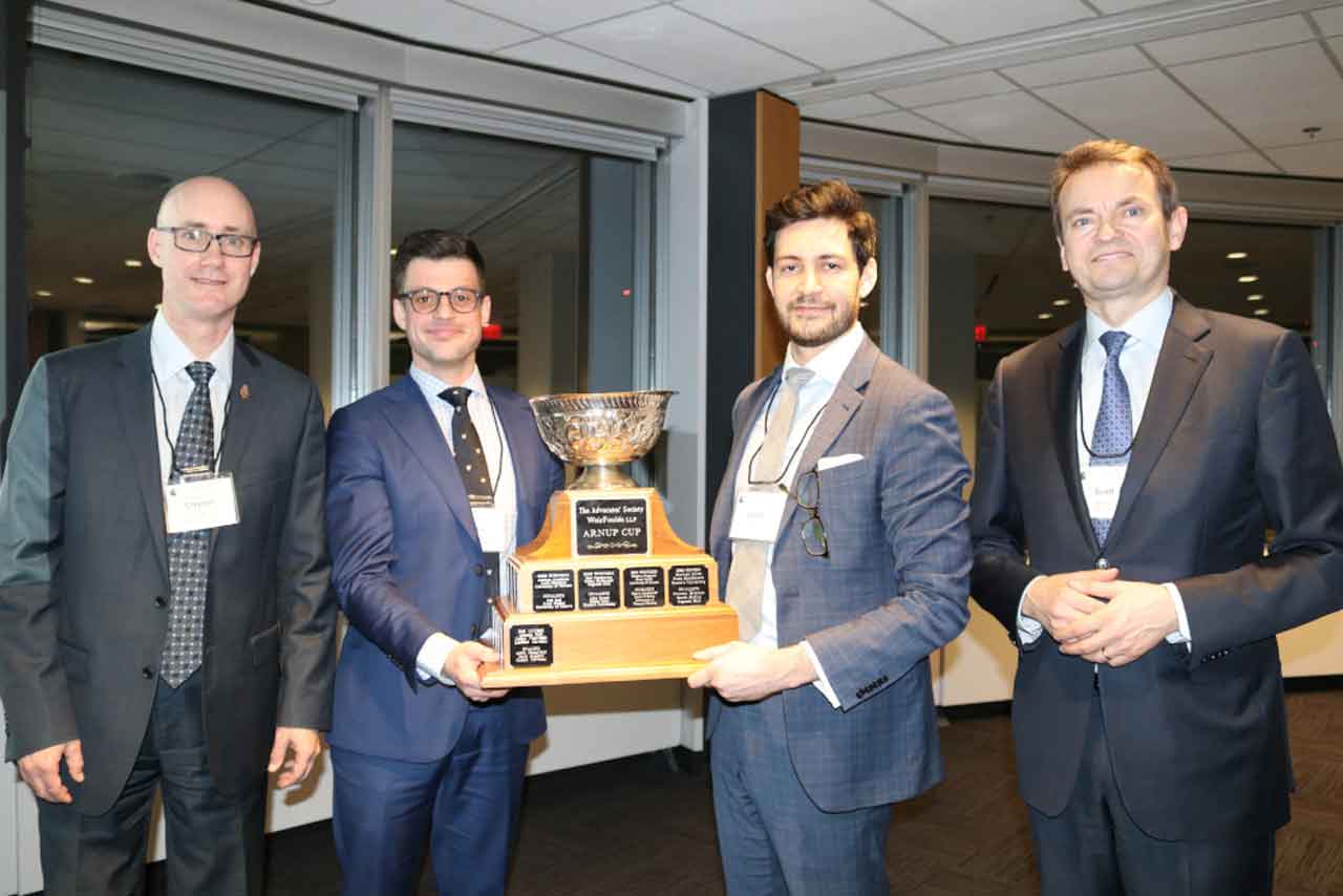Justin Blanco and Justis Danto-Clancy won the Arnup Cup on February 8 in Toronto after successfully defending their fictional client, bar owner Carl Benoit, charged with causing an indignity to a body and first-degree murder. Benoit pleaded guilty to the first charge and not guilty to the second.