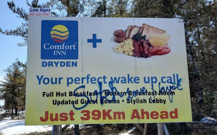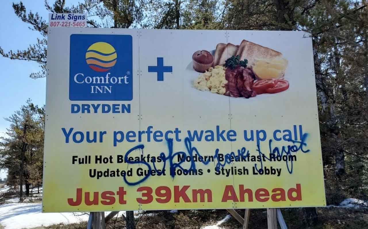 DRYDEN – NEWS – Fast work by the Ontario Provincial Police has resulted in mischief charges for an individual accused of spray-painting over signs.