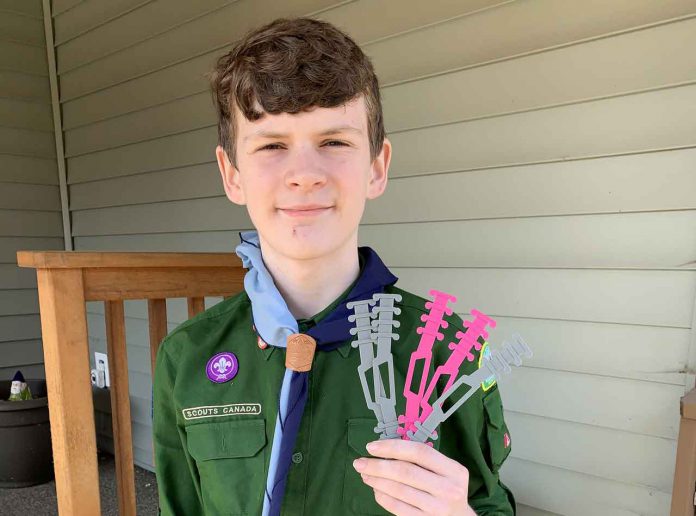 Maple Ridge Scout Quinn Callander responded to a request to make ear guards for local healthcare workers suffering from face mask pain. With his 3D printer operating 24 hours a day, he has created hundreds of ear guards and delivered them to hospitals and senior care facilities in Vancouver, across Canada, in the United States and the United Kingdom. Demand for the ear guards is high and attracting global response, so anyone with a 3D printer is encouraged to join Quinn’s initiative by accessing the template. Each costs nine cents to make. Scouts Canada is helping distribute thousands of donated ear guards.