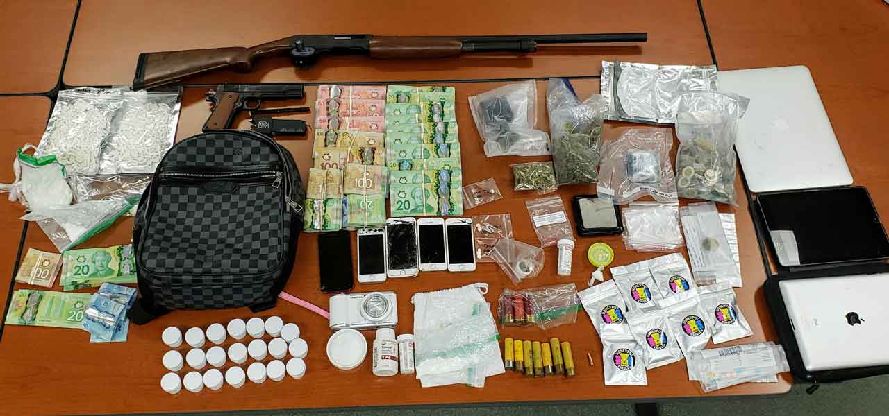 Two persons were arrested and police seized suspected Cocaine, Oxycodone, Methamphetamine, Cannabis, weapons, Canadian currency, electronics as well drug paraphernalia, all with a combined estimated street value of $50 000.