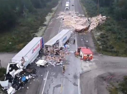The OPP Report: “OPP are currently investigating a fatal motor vehicle collision involving three tractor-trailer units approximately 15 km East of Ignace. Highway 17 is closed at Shabaqua and in Ignace at Highway 599”.