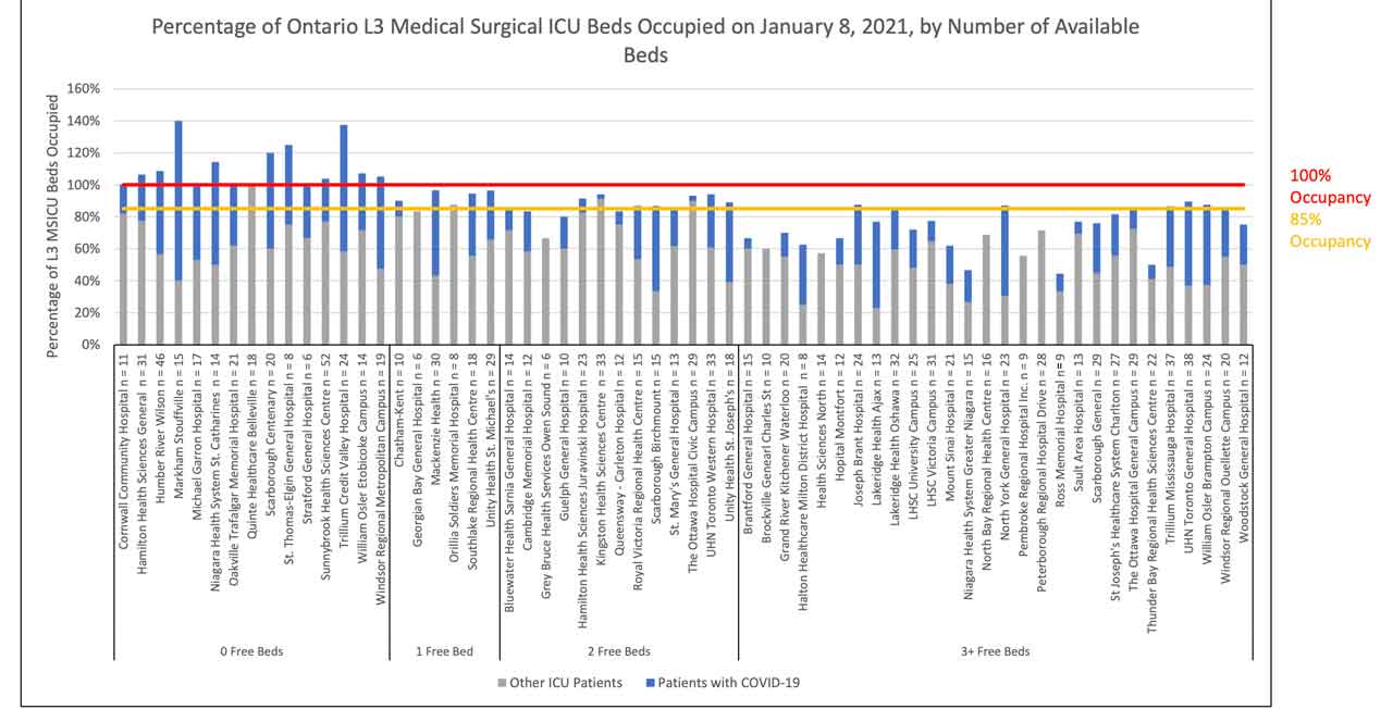 - COVID-19 ICU occupancy is now over 400 beds. Surgeries are being cancelled and the access to care deficit will continue to increase with real consequences for health.