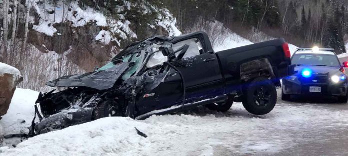 MANITOUWADGE – On January 13, 2021 at approximately 03:19 pm, officers of the Ontario Provincial Police (OPP) Manitouwadge detachment received a call regarding a single motor vehicle collision (MVC) on Highway 614 north of Wabikoba Road.