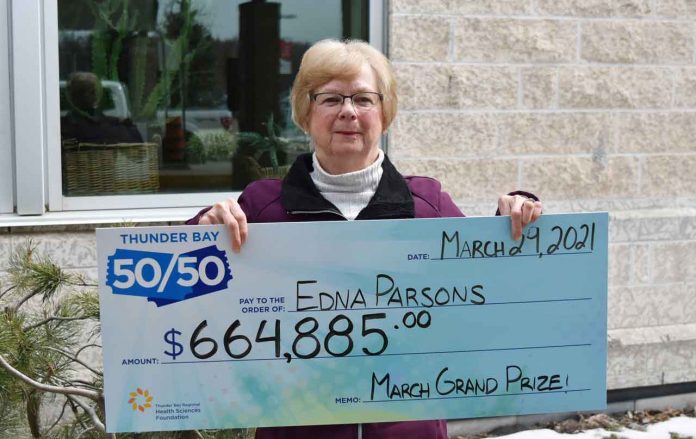 Thunder Bay – LIVING – When she got the call last Friday that she’d won $664,885 in the Thunder Bay 50/50, Edna Parsons was in total disbelief.