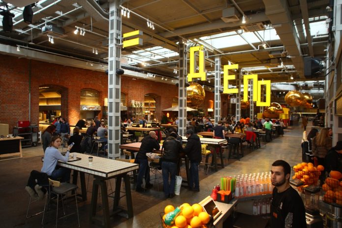 “Depo” covers more than 215 000 ft², in which visitors may enjoy various culinary excellencies in restaurants, food corners and bars, while also explore other facilities such as gyms, banks, boutiques, pet grooming saloons. Depo’s crème de la crème attraction however is “Depo.Moscow” – the largest food mall ever built in the entire of Eastern Europe. Depo.Moscow, which is considered to be one of Moscow’s best renovated cultural heritage sites by Moscow Mayor’s Office, occupies an area of over 120 000 ft². 75 restaurant concepts are laconically located under one roof, a grocery market with farm products that pleases its visitors all year round. But that’s not all, today “Depo” is the largest lifestyle platform in Moscow, a place for meeting and negotiations, a center of attraction for young people, large-scale food festivals, culinary master classes, dance marathons and all kinds of concerts of pop stars.