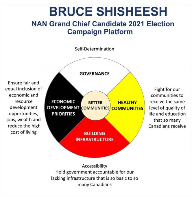 My name is Bruce Shisheesh, and I’m honoured to be running for the Nishnawbe Aski Nation Grand Chief 2021 election.
