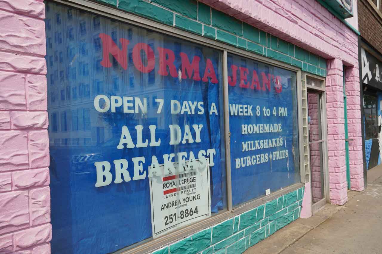 Lots of empty buildings, broken windows, and for sale signs. Victoriaville for the most part is empty. There are three shops open in what once was Victoria Avenue – the rest of the businesses are in the buildings on the sides.
