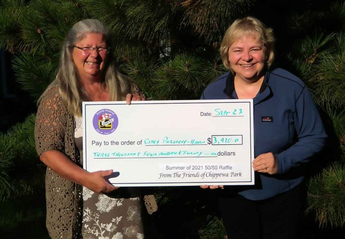 The Friends of Chippewa Park presented a cheque for $3,420 to winner Cathy Paroschy-Harris this week. Ms. Paroschy-Harris was the winner of the winner of The Friends of Chippewa Park’s Summer 2021 50/50 Draw held on Labour Day and her ticket was part of a gift basket she purchased during The Friends Giant Yard Sale held in August at the park.