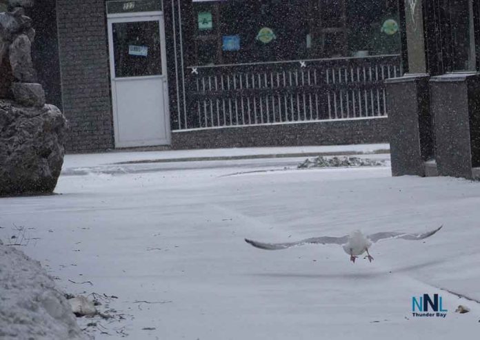 Flurries are expected for Thunder Bay today. It is -6 this morning, so rather than rain we can expect two centimetres of snow. Winds will be from the north at 20 km/h gusting to 40 early this morning. High for the day of -2 with wind chill value of -14 this morning and -9 this afternoon.