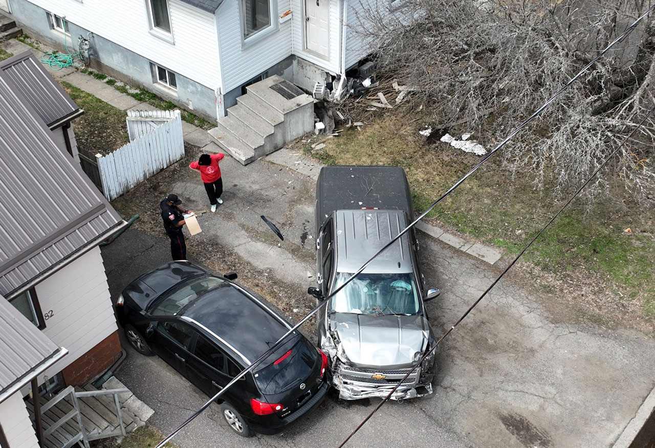 Police also observed a Kenogami Avenue home that had apparently been struck by the pickup. The damage to the home was extensive.