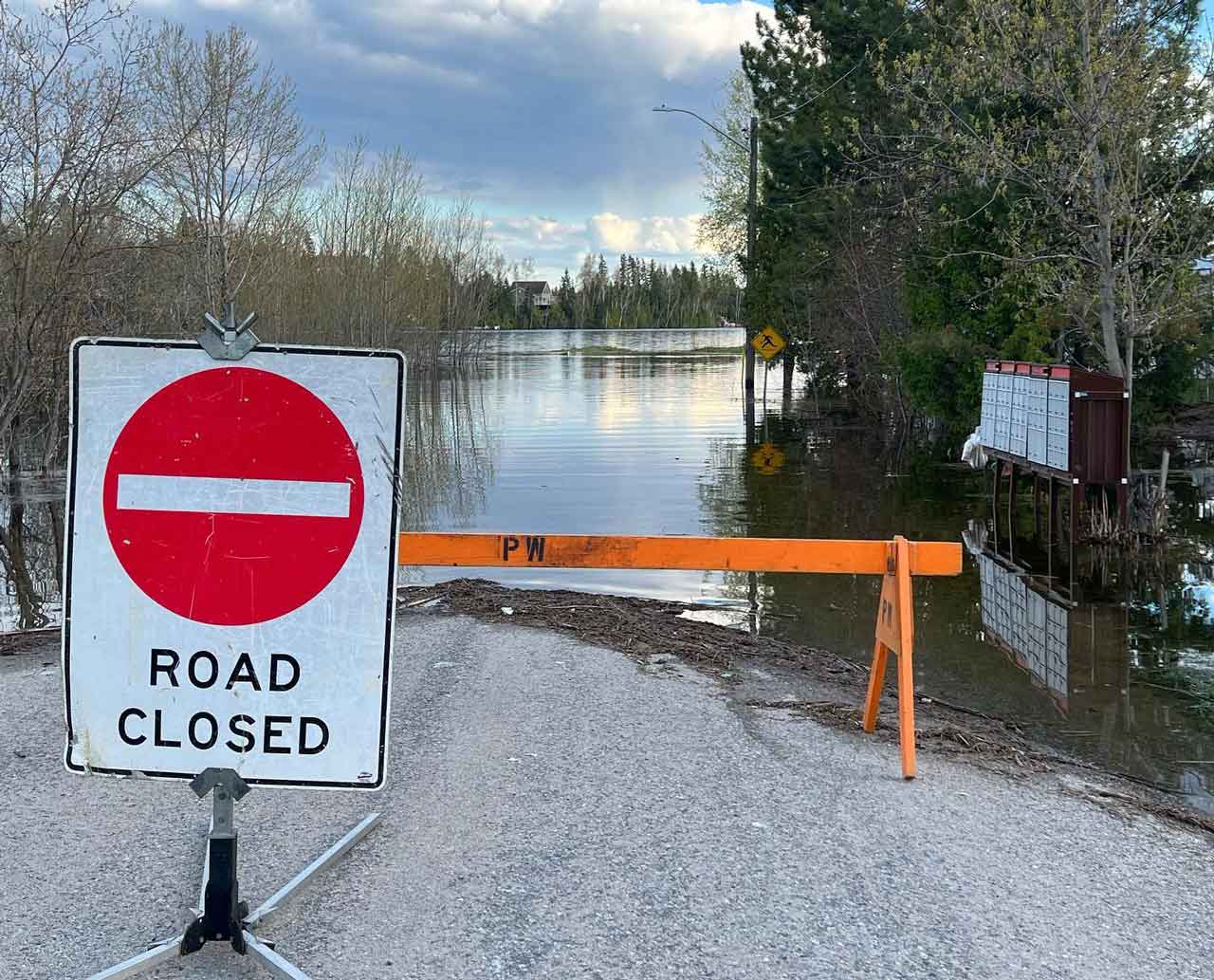 Public Works Operations Manager, Mat Lelonde on Friday said, “We are working directly with residents impacted by flooding in low lying areas and are providing targeted support. Lakeshore Drive is being sandbagged, as the water is now level with the road. A section of Ethel Street is also closed, due to water over the road at the far east end. Sturgeon River Road had a small washout at the first culvert past the hotels. We have temporarily repaired the culvert and have both lanes open again. We continue to monitor it closely, but it will likely be closed later today.”