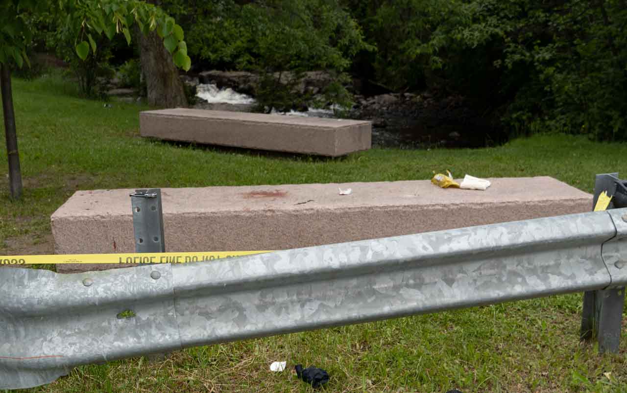 Thunder Bay Police on scene have the walking trail beside McVicar’s Creek blocked off by crime tape from Algoma Street to Court Street. Officers were scene with evidence bags from further up the pathway.