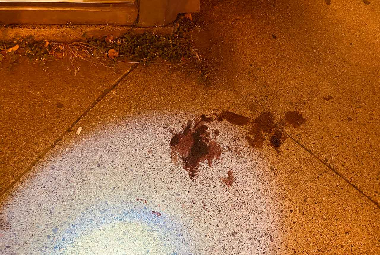 You can see on the sidewalks in our city, the blood from fights that happen across Thunder Bay. Fortunately today, the rain has washed this away.
